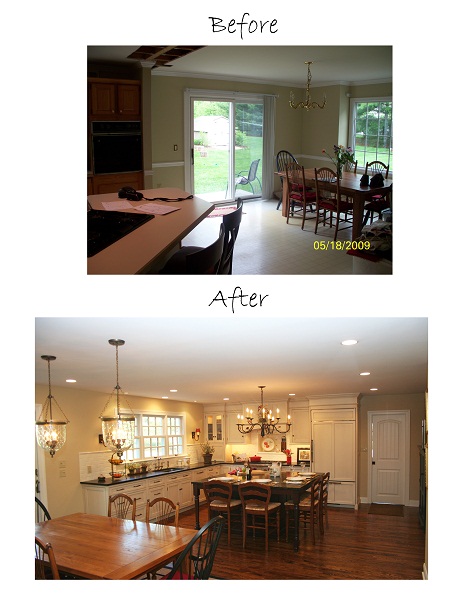 white perimeter cabinetry. A new detailed column separates the kitchen