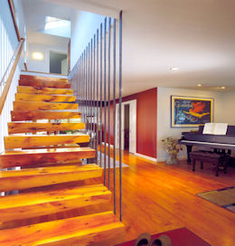 The clients were about to be married, and would be moving two households into this tiny 1830s residence. In various stages of disrepair, it had served fine as an urban bachelor's pad, bit it wasn't going to cut it as the family home for this new couple. The design solution, inspired by the Not-So-Big¨ house philosophy, was entirely based upon the way that the clients really lived, not on some pretext for what a home should be. Many NSB¨ design techniques were employed to enhance the visual expansiveness of a rather compact 1,900 square foot home.