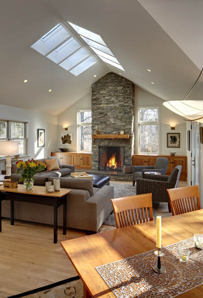 Transforming the home “From Adolescence to Sophistication” was the goal the clients expressed as we began a master-planned, multi-phased, whole house remodel/addition project. The design solution was judicious in the addition of any new square footage. The home’s floor plan was reorganized around a central spine of circulation connecting both ends of the home. Seamless additions were added to the north, east and south of the home, picking up on the home’s “pavilion” concept, creating balance and modulating scale. A net-zero home was achieved via Green construction methods, energy retrofits, and upgrades including a 14Kw “solar barn” PV array.