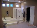 inviting and warm. They wanted a larger, walk-in shower with dual heads,