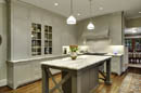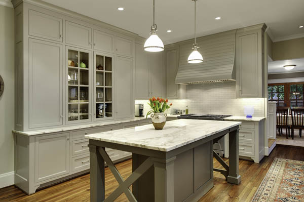 and backsplash also help to brighten the kitchen. Custom cabinetry and a