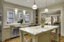 the sink and makes the kitchen brighter. Light-colored marble counters