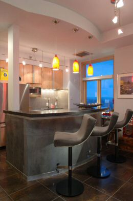 shelf closets into custom designed cabinetry. The cabinetry design, with