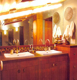 cozy bathroom. Earth tones, organic materials, and Asian-inspired