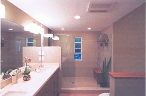this open floor plan, roomy master bathroom as a calming sanctuary. The