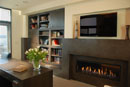 and floating shelves above the tub. Adorning the entry is a custom-built